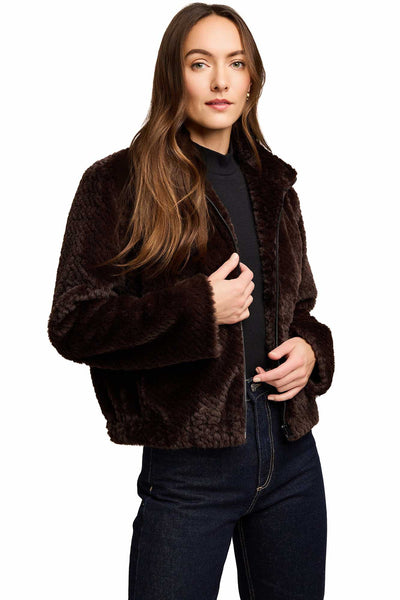 Delilah Sherpa Jacket - White/Natural Finish Line Checker - Women's