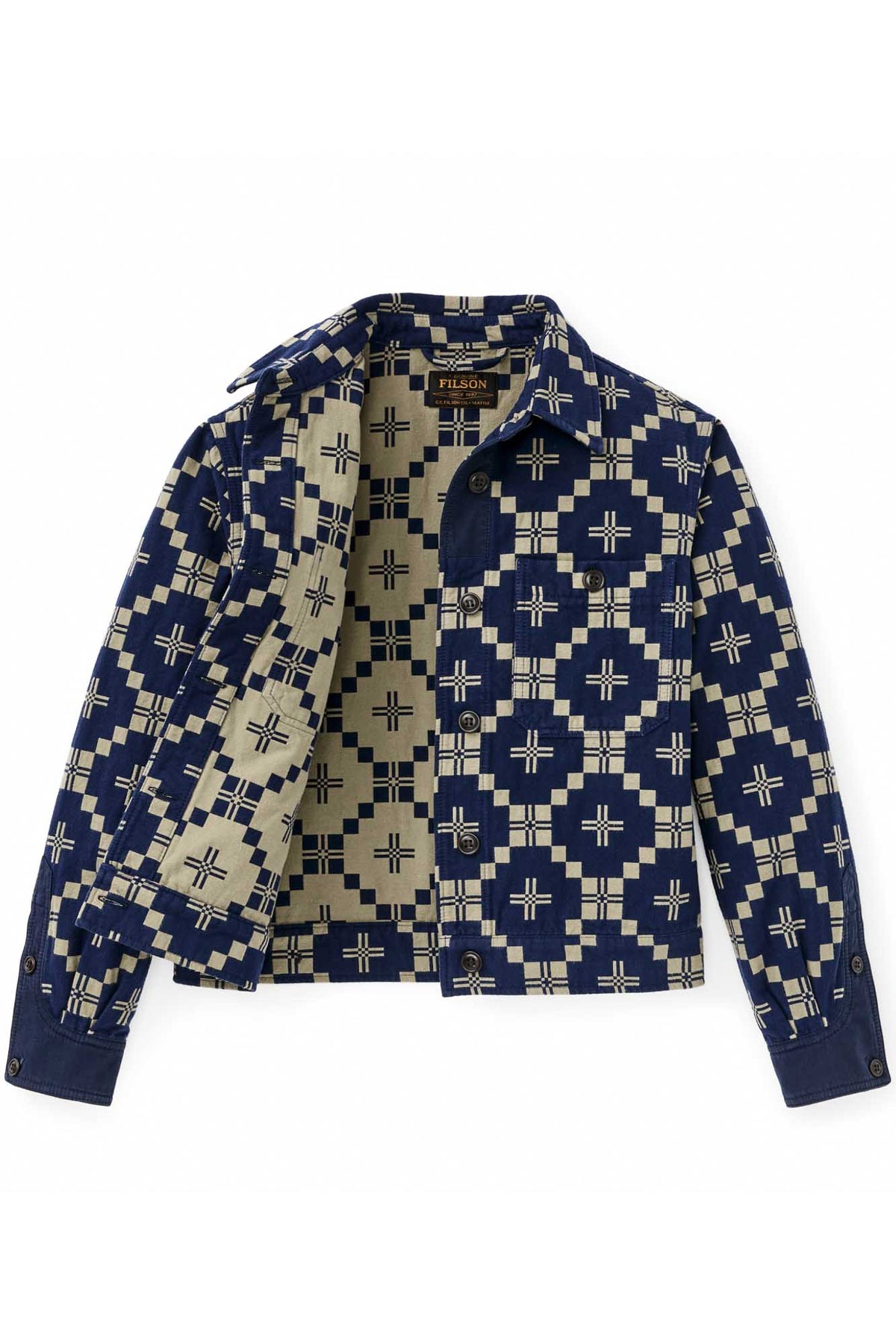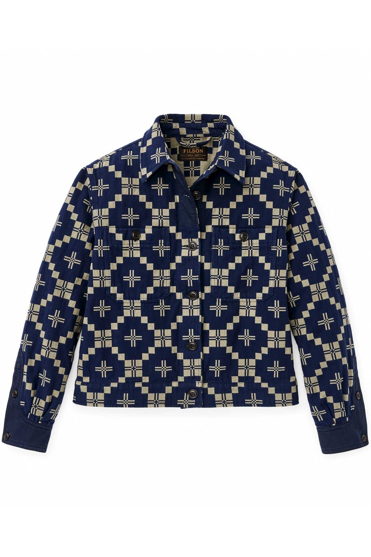 The women's Colchuck Short Jacket is a waist-length layer designed for comfort in shifting spring weather. It's sewn from 9-oz. cotton double cloth that's brushed for softness and woven with a jacquard-woven graphic pattern. The fabric is substantial enough for durability, yet light enough to wear from early spring through cool summer evenings.