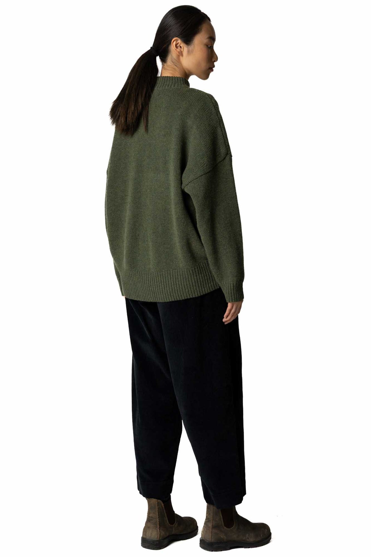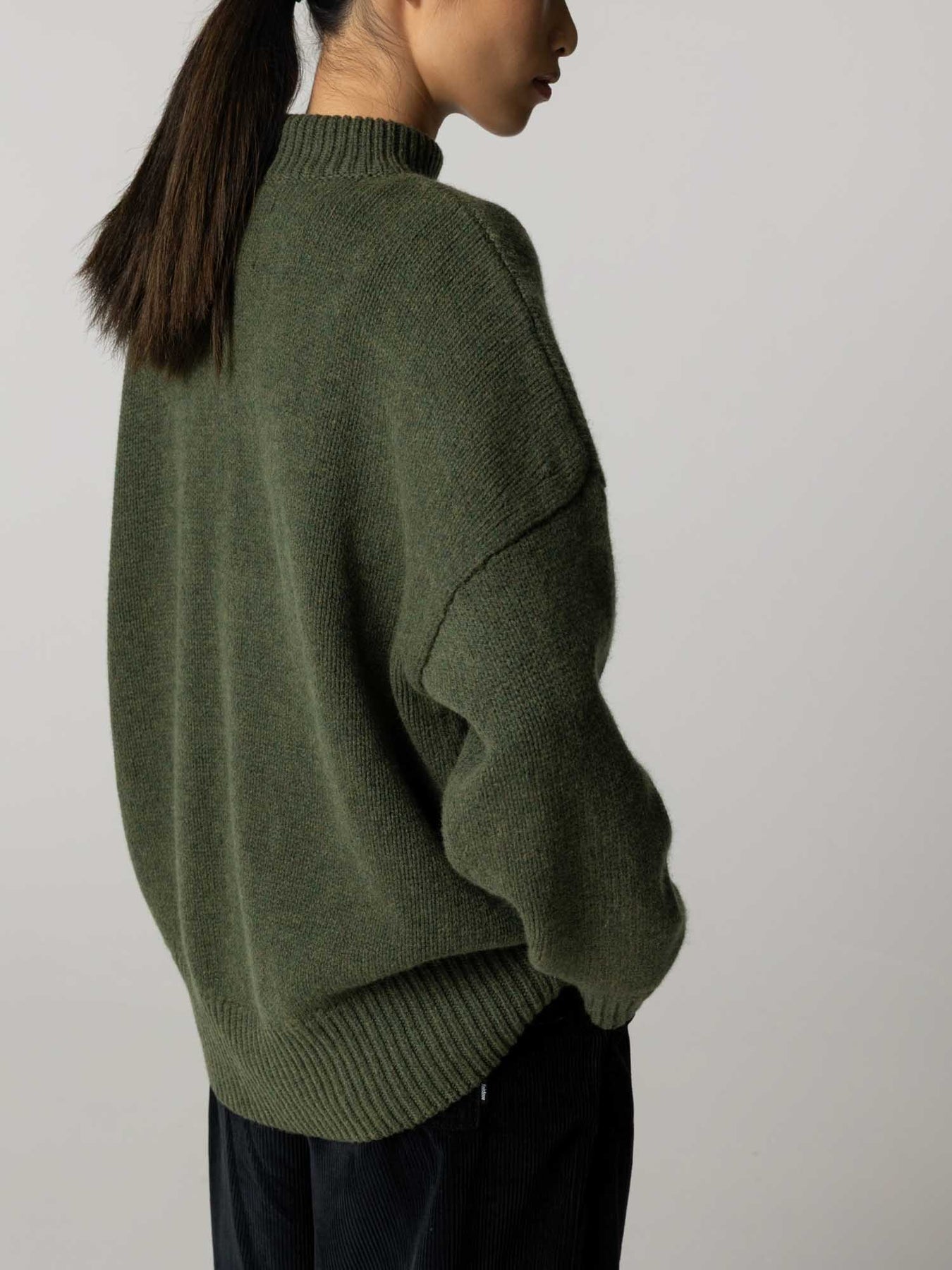 Made with a weighty, felted wool blend yarn, it's warm enough for outside exploration but cosy enough to relax indoors too. Super soft, you'll be pulling this sweater on at dawn to check the surf, or styling it with denim for winter dinners with friends.