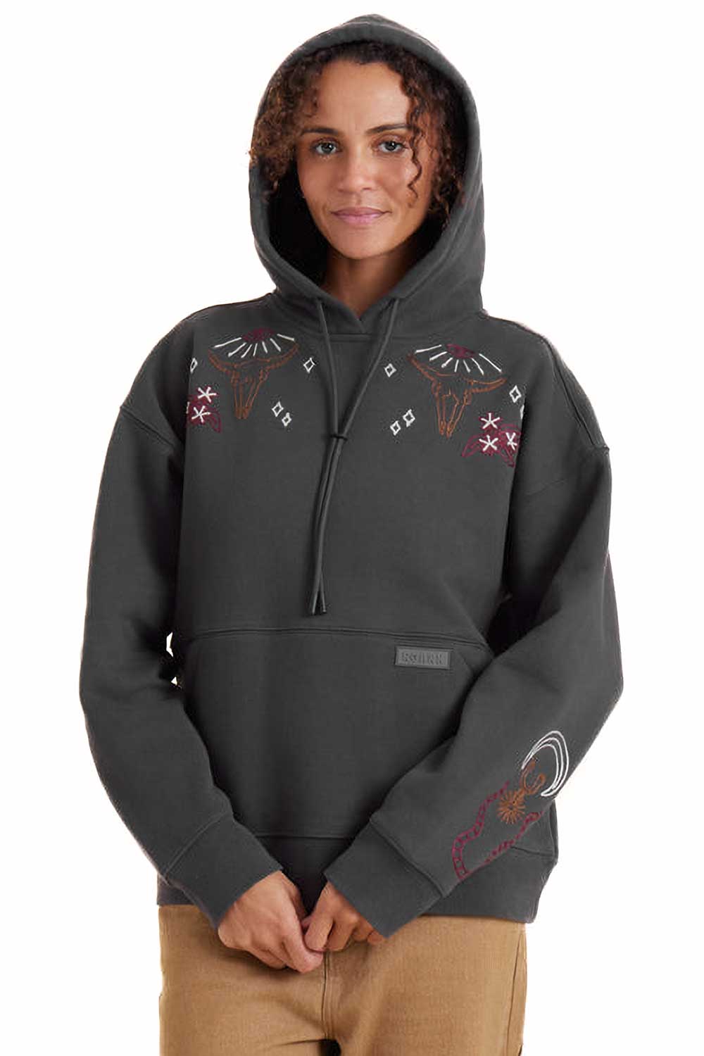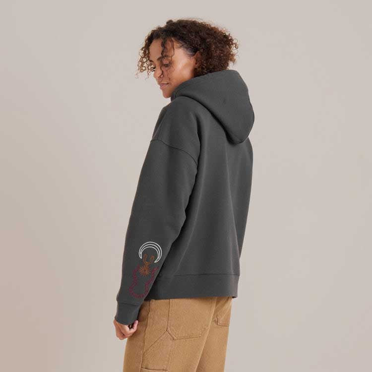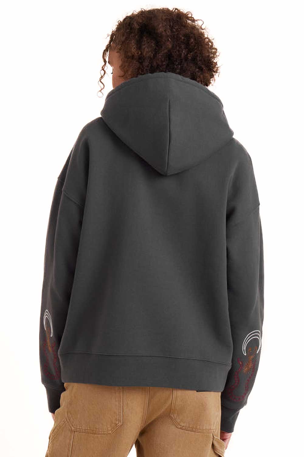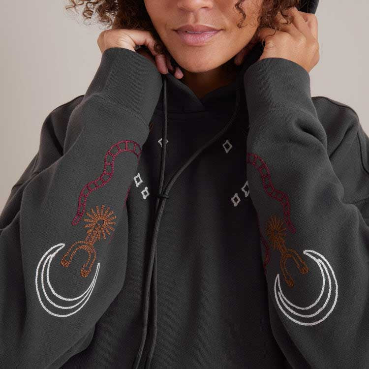 A hoodie as bold as you, featuring an oversized cut and mixed media embroidery and chenille art for the ultimate statement piece around the campfire.