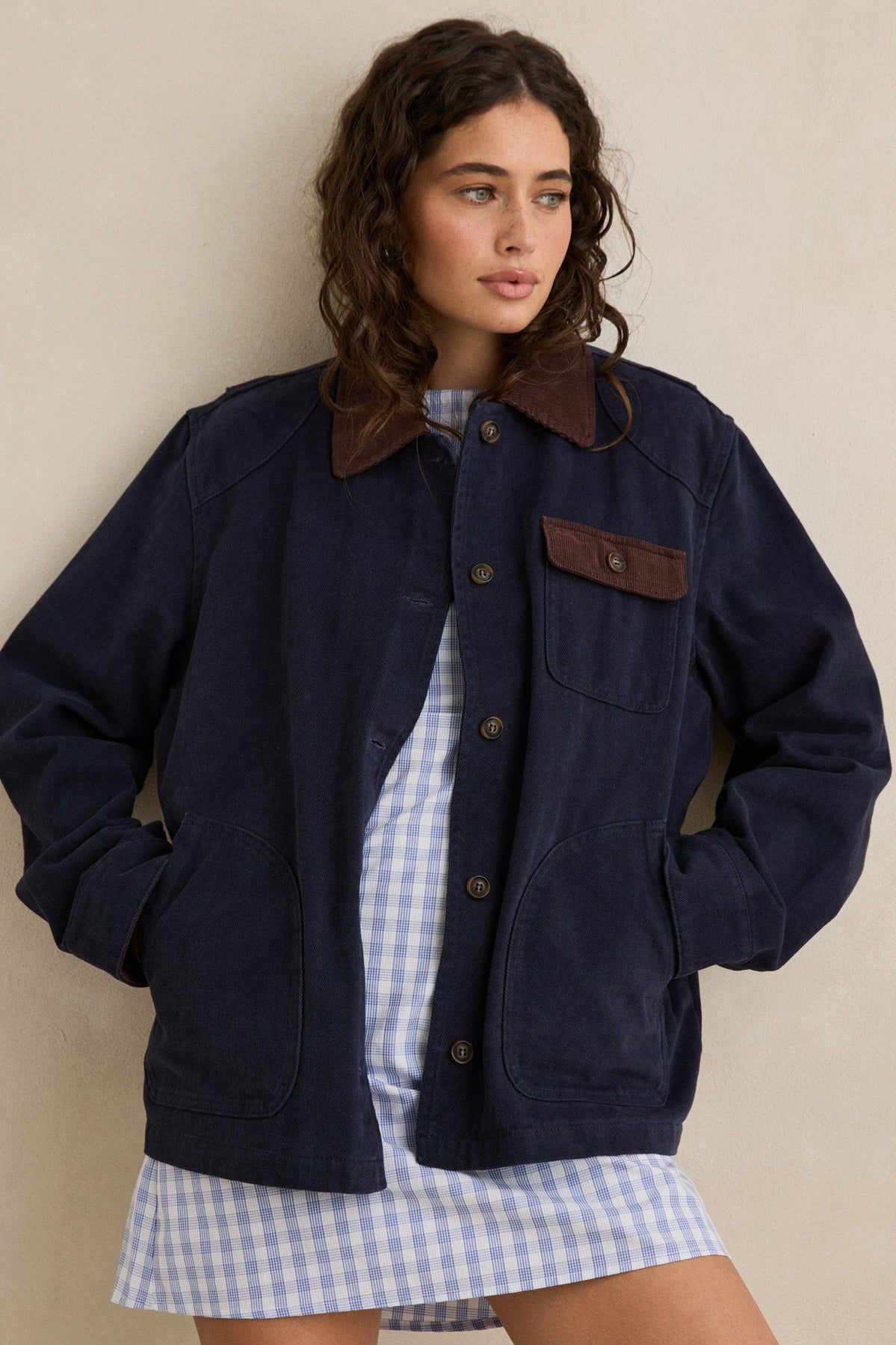 A nod to classic workwear, the Jasper Jacket is a heavyweight twill barn-style jacket featuring tortoiseshell buttons, front pockets, and a contrast cord collar for a vintage-inspired finish.