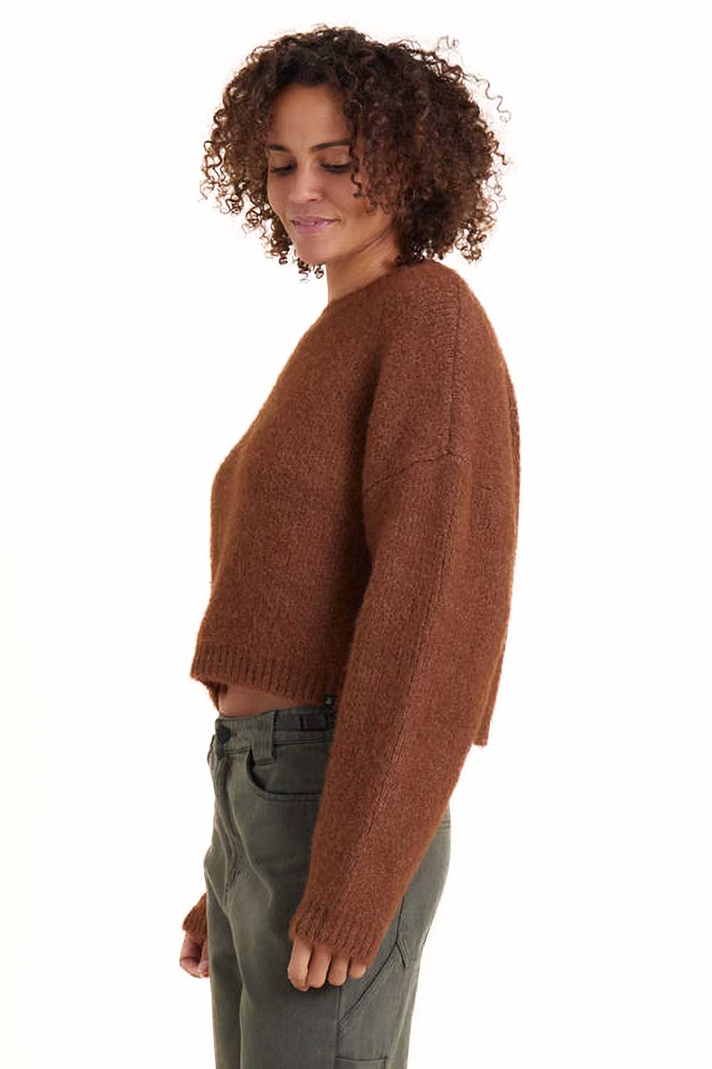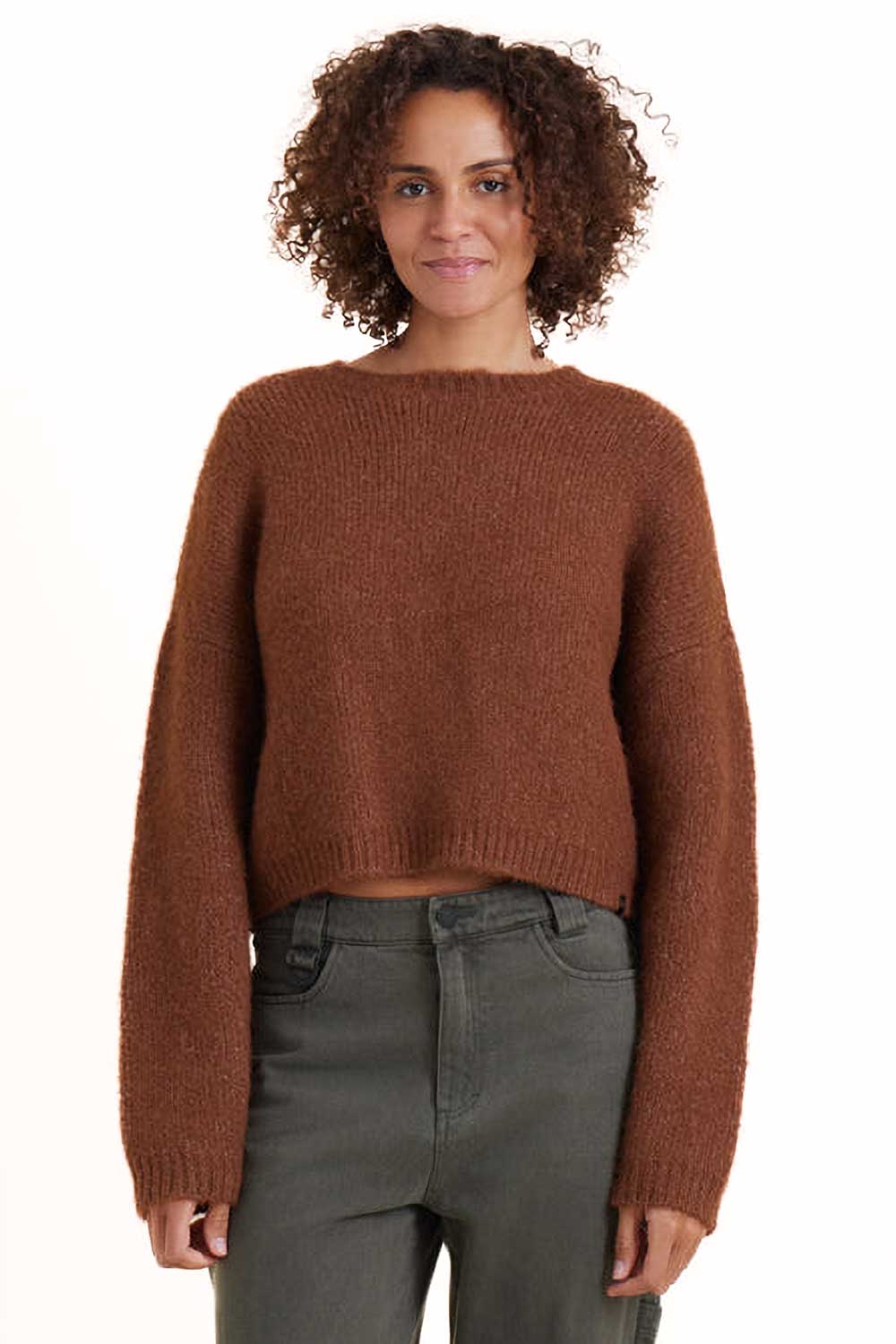 This warm and fuzzy oversized sweater crafted from brushed yarns is sure to make you want to curl up next ot the fire with your favorite whiskey this winter. Designed with a boxy cropped fit to pair effortlessly well with your favorite vintage denim when for those mornings when you’re on the go but want to remain cozy and warm.