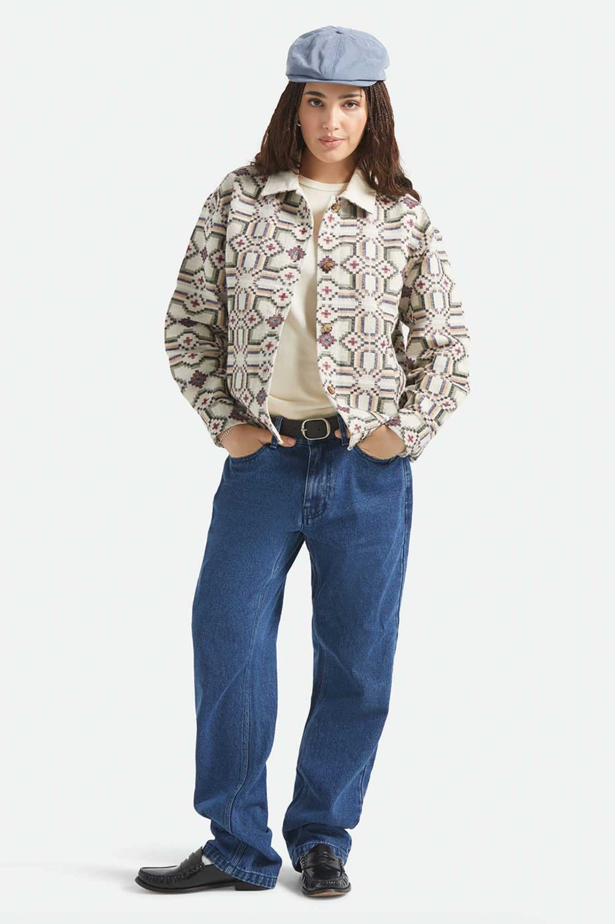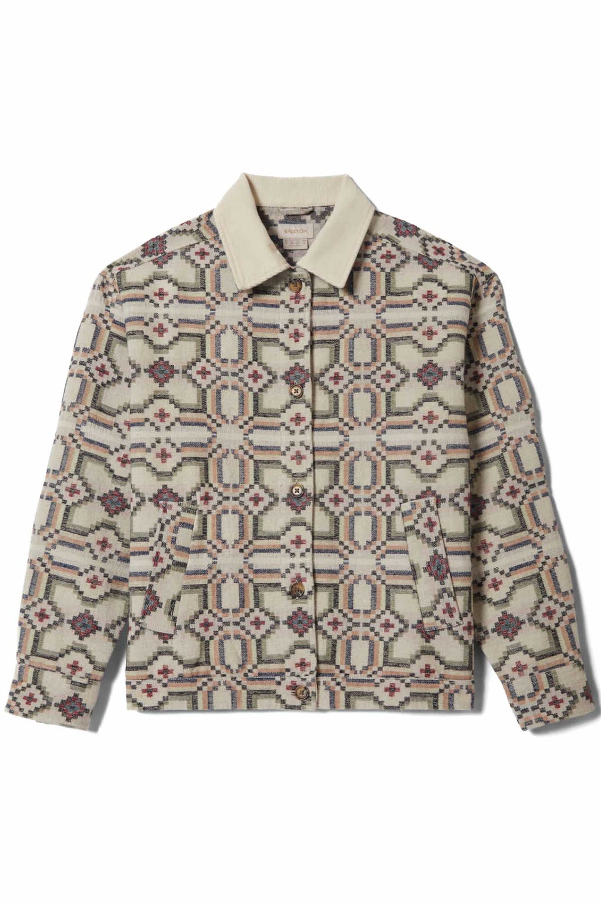 The perfect layer for those in-between days. The Alfama Jacket features double brushed jacquard flannel in a stunning floral tile pattern that adds character to any outfit. Corduroy collar and welt pockets bring texture and authentic details, while the center front button closure keeps the silhouette clean. Whether you're strolling through new cities, grabbing dinner with friends, or just need something extra for cooler evenings, this jacket has you covered in style.