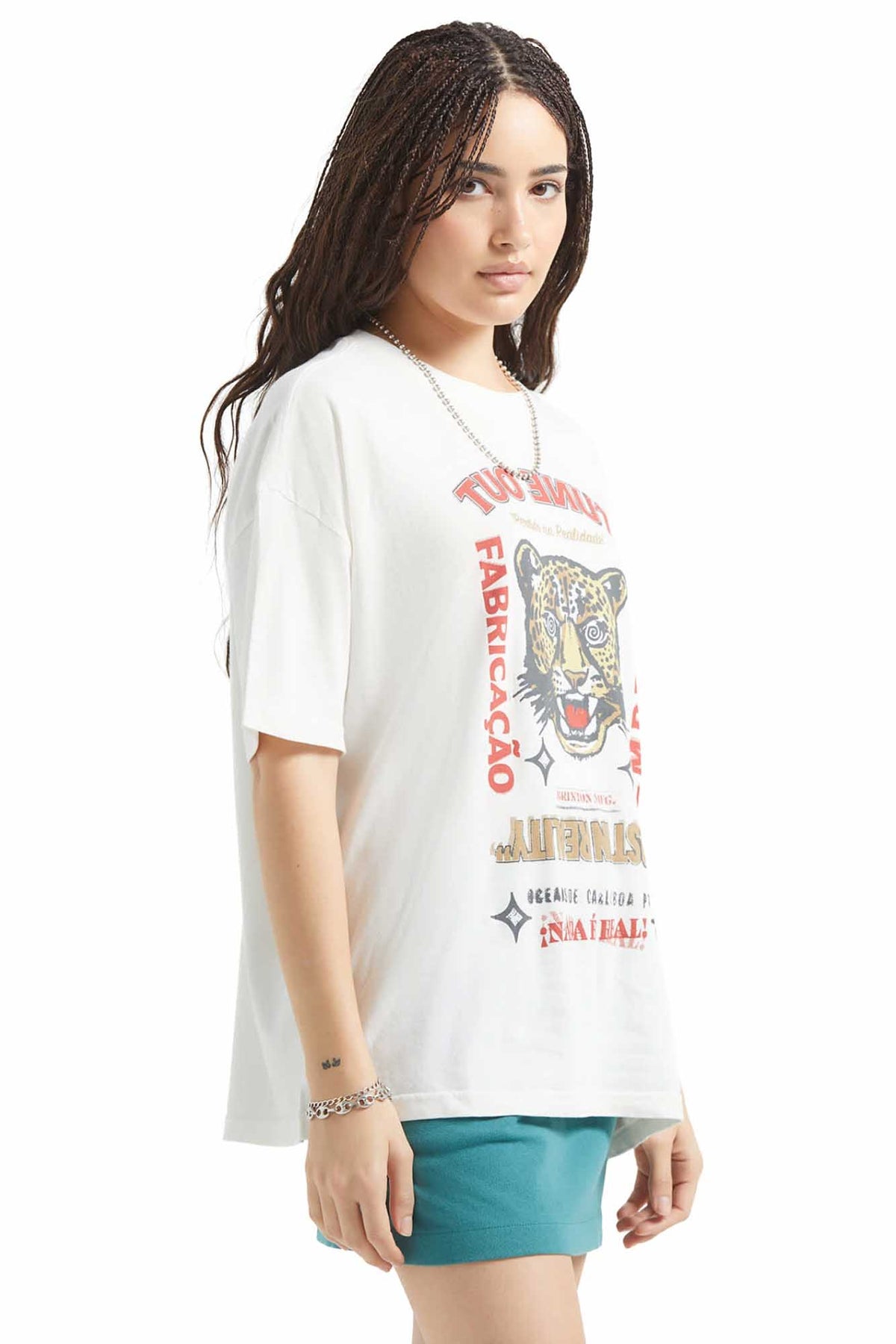 Ready for your next adventure in style. The Getaway Boyfriend Tee features 100% Better Cotton Initiative jersey with a worn wash that feels like your favorite vintage find. The oversized boyfriend fit is perfect for layering or wearing solo, while the retro jaguar screenprint brings that wild energy wherever you're headed. Soft cotton moves with you from road trips to beach days to lazy weekends when comfort is everything.