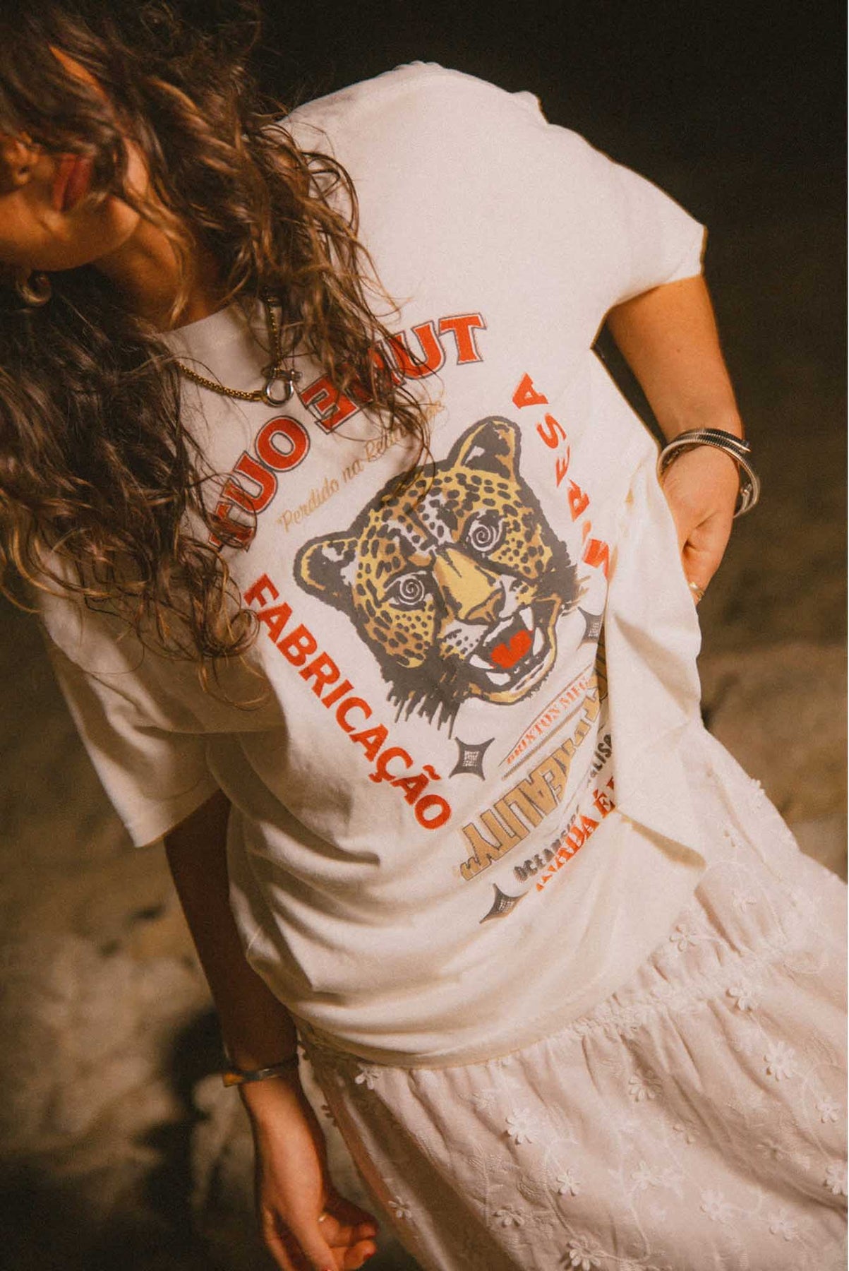 Oversized boyfriend tee with retro jaguar design in perfectly worn cotton.