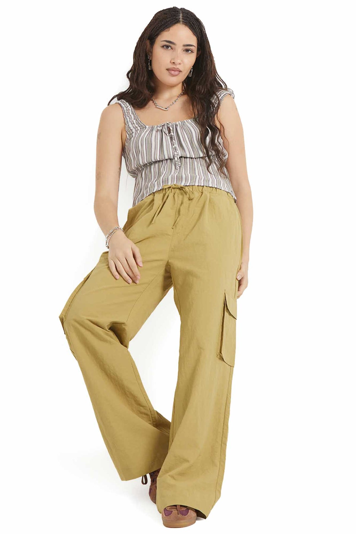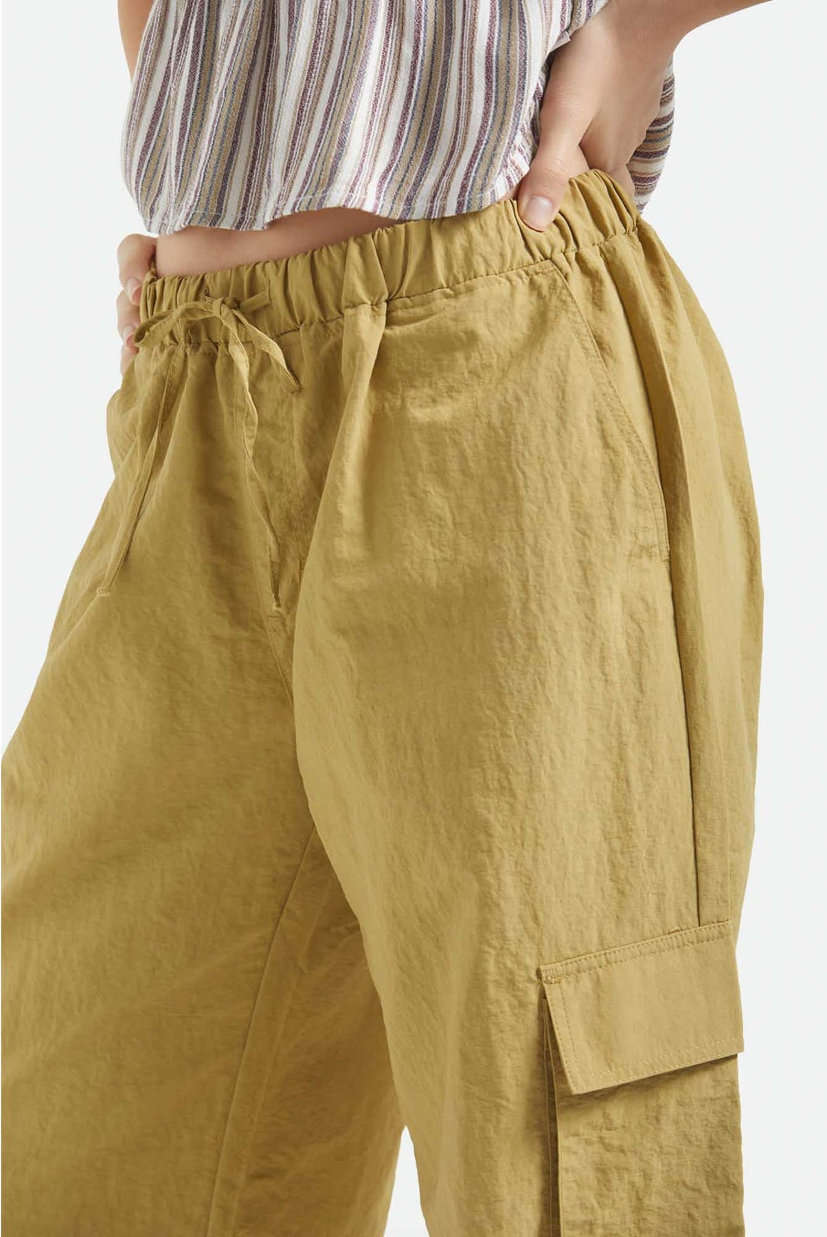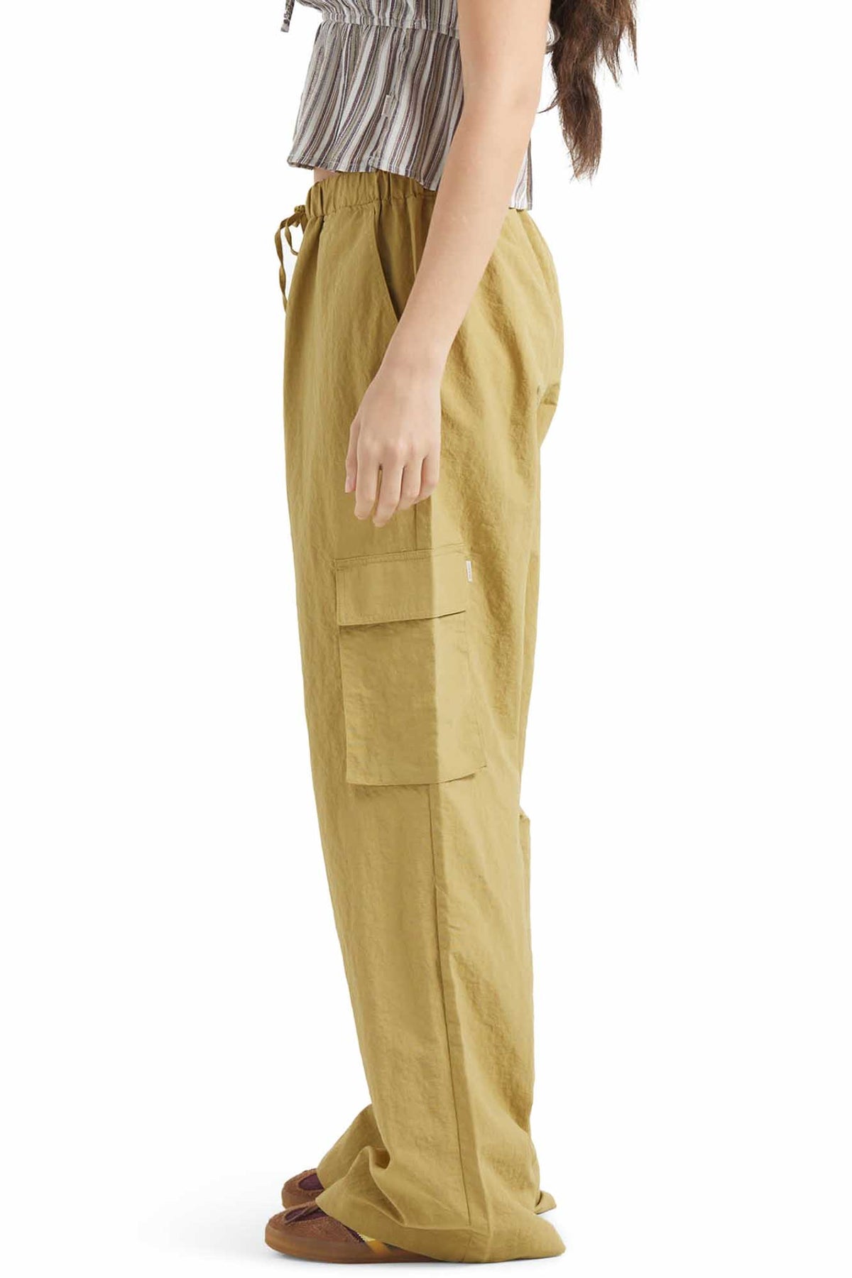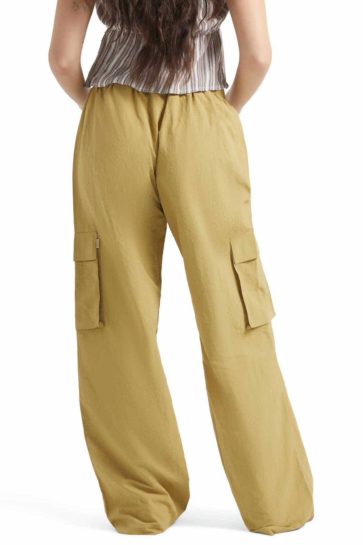 Adventure-ready style in every detail. The Jett Cargo Pant is crafted with lightweight 100% nylon that's built to move with you wherever you're headed. Surplus and cargo patch pockets give you space for your stuff, while the baggy fit and 23" leg opening create that effortless silhouette that looks good with everything. Elastic waistband with drawcord ensures the perfect fit, whether you're dancing at festivals, exploring new neighborhoods, or just living your best life.