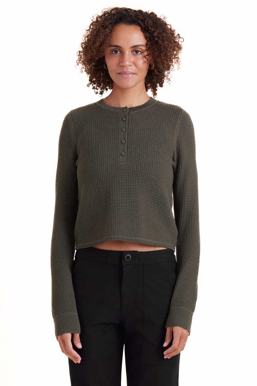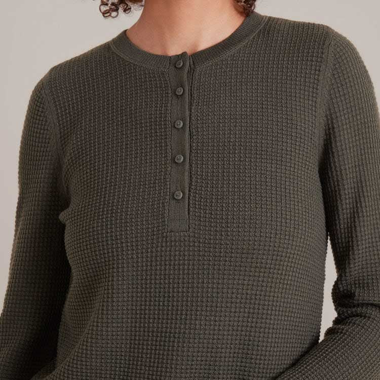 Well Worn Long Sleeve Thermal Sweater - Military - Women's
