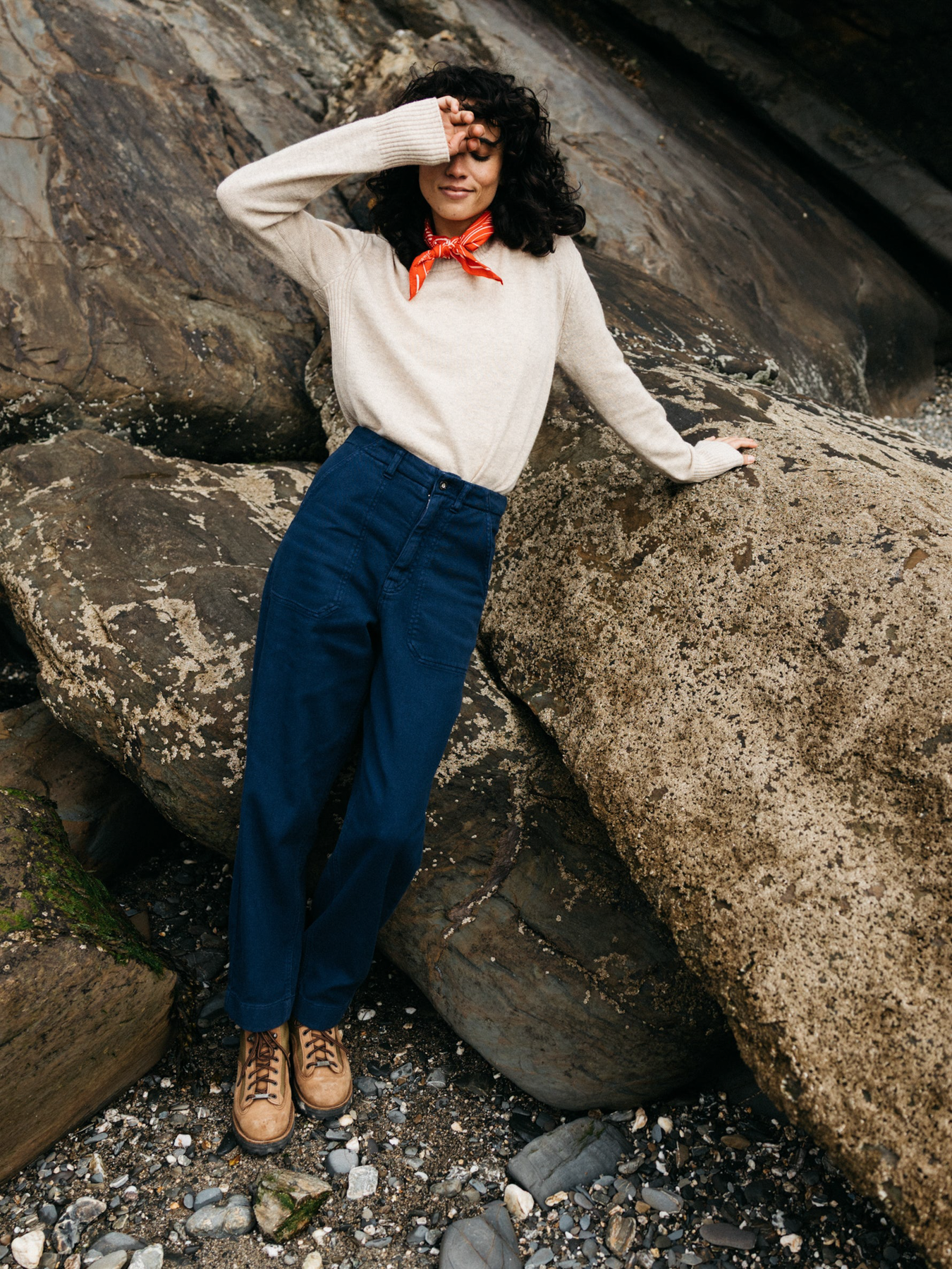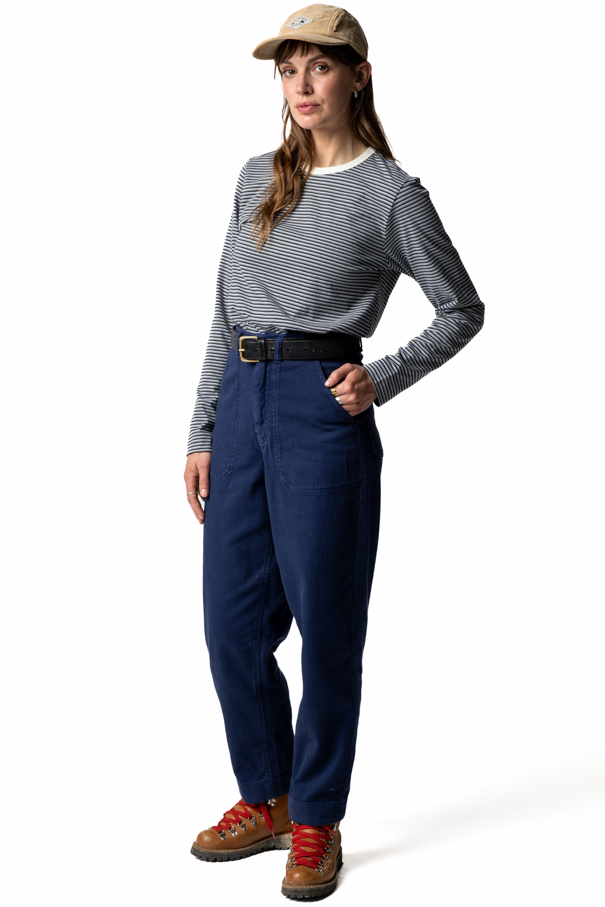 A versatile Finisterre staple inspired by classic workwear, our women's Yarrel pants combine durability and practicality with a stylish fit for everyday wear - a fitted high waist, wider in the hip and thigh, and with a tapered leg. Perfect for work, adventure, and everything in between.