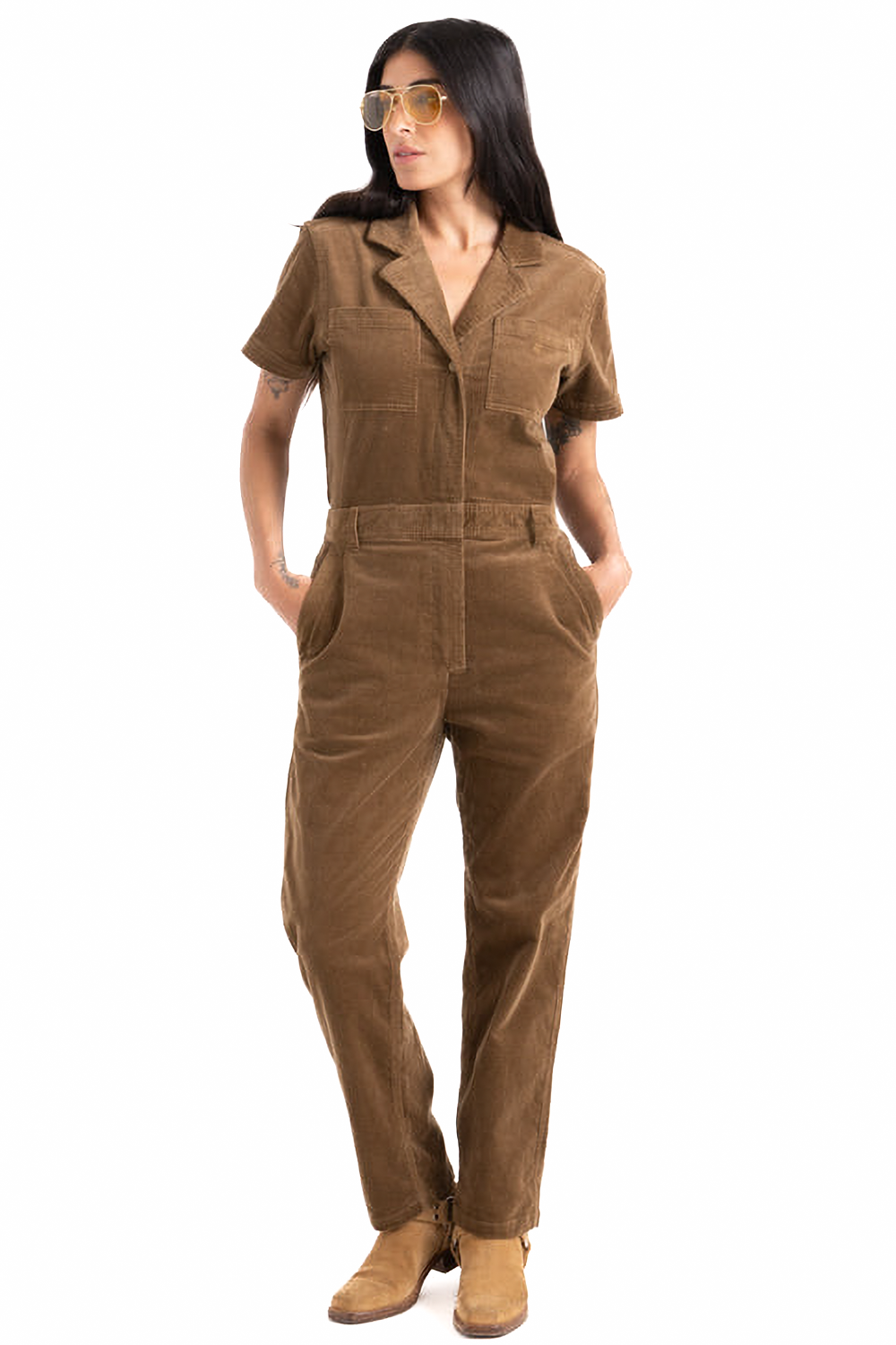 Made for missed flights, roadside repairs, and coffee-fueled wanderings, the Layover Cord Jumpsuit is your all-in-one ticket to comfort and capability. Crafted from a soft yet rugged stretch cotton corduroy, this relaxed-fit coverall moves with you—from trailhead to tarmac. With a full front zip for easy entry and subtle structure that flatters while it functions, it’s the piece you’ll wear when you don’t know where the day will take you—but you’re going anyway. One piece. Endless destinations.