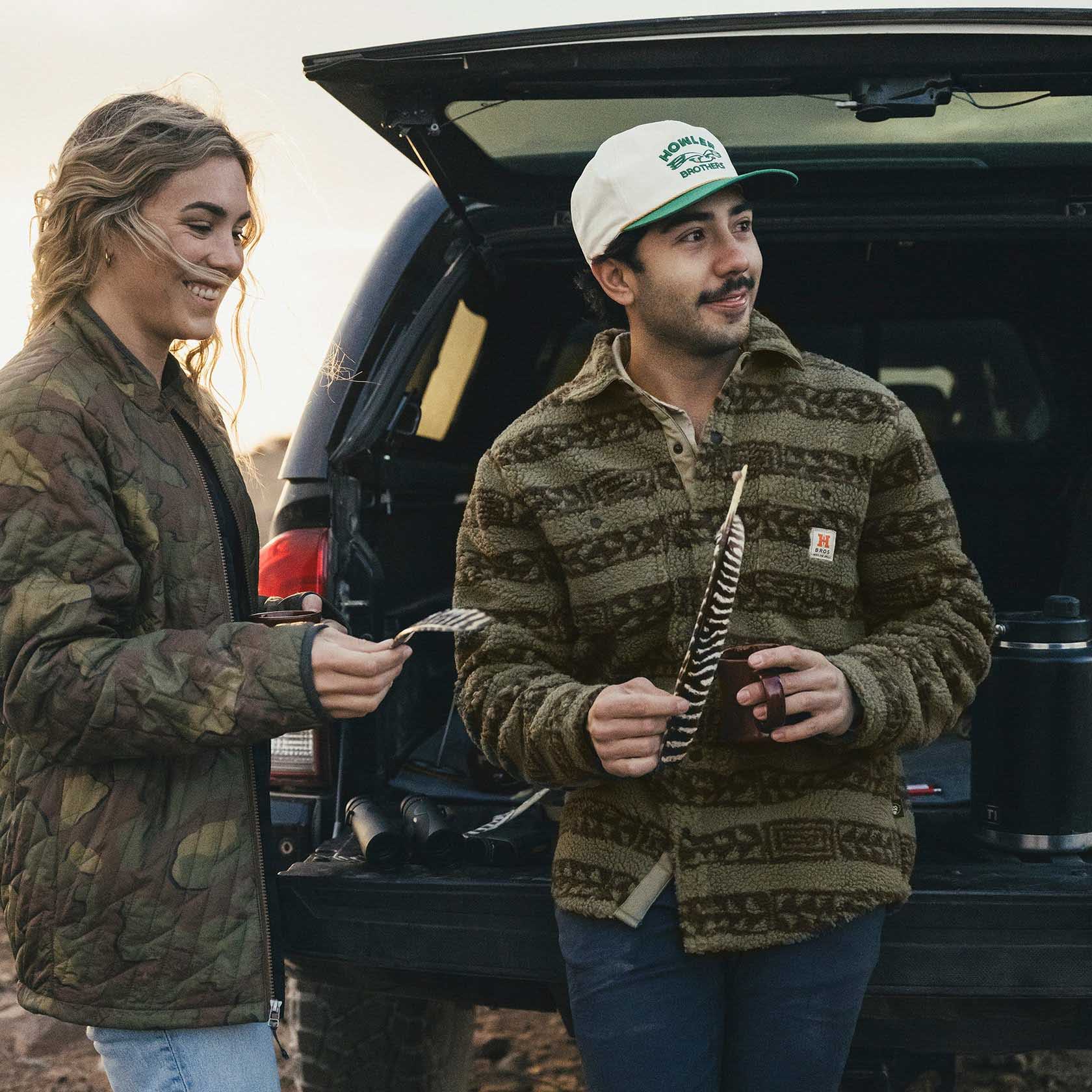 Meet your best friend for fall, the Allegheny Fleece Overshirt. Made of soft and fuzzy high pile fleece with handy HB snaps at the placket and pockets, the Allegheny works like a casual jacket for your happy hour meet-up but doubles as a go-to companion for just hanging by the fire watching the tube.