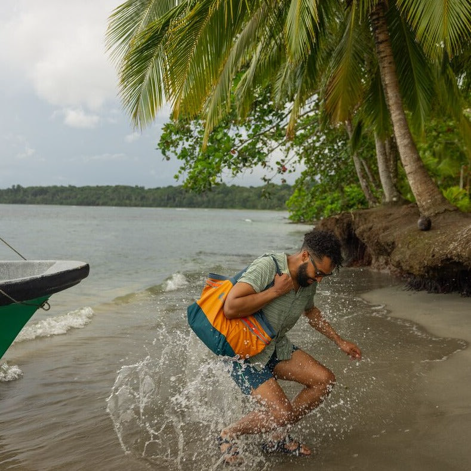 This Allpa Gear Hauler is made with 100% recycled fabrics sourced from pre-consumer waste. Cotopaxi used recycled nylon for the shell and recycled polyester for the liner.