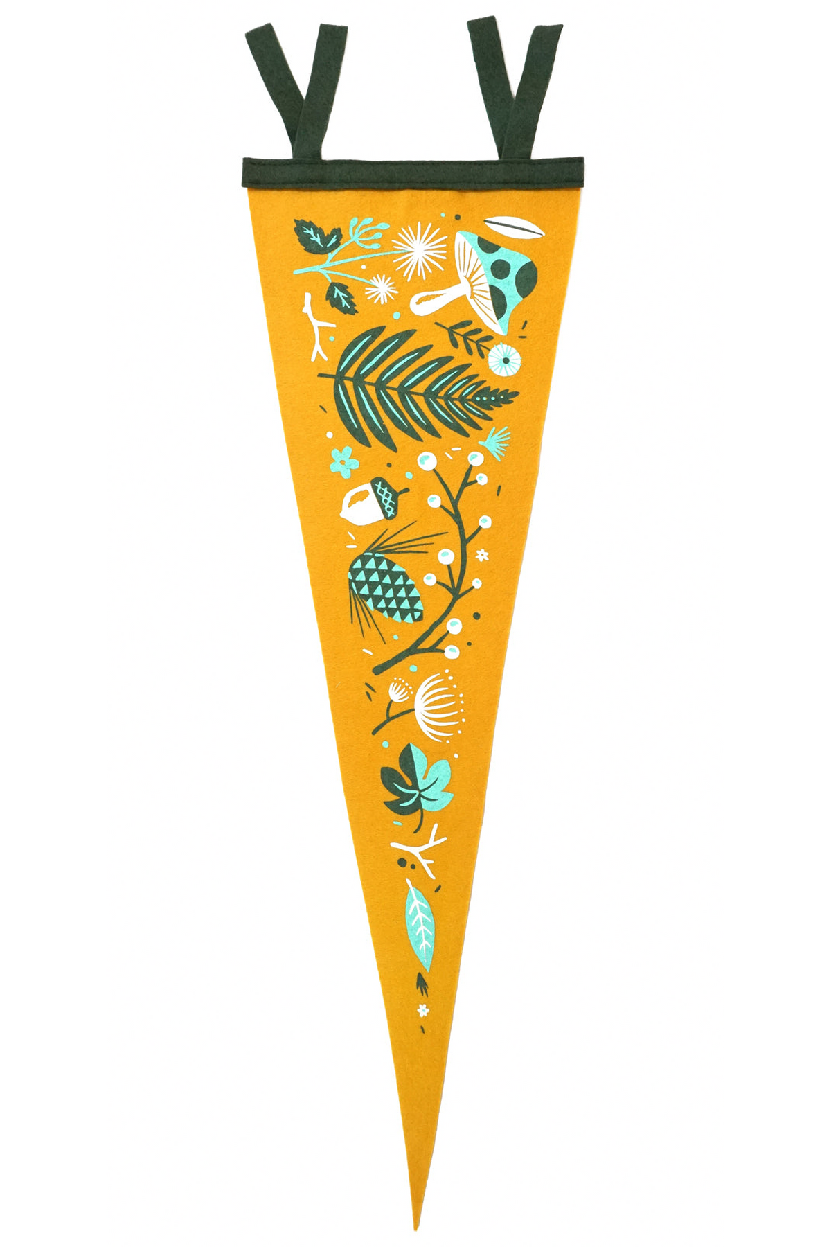 This whimsically illustrated custom pennant is a collaboration with Austin, TX-based Brave the Woods. Perfect for lovers of wilderness and adventures alike.