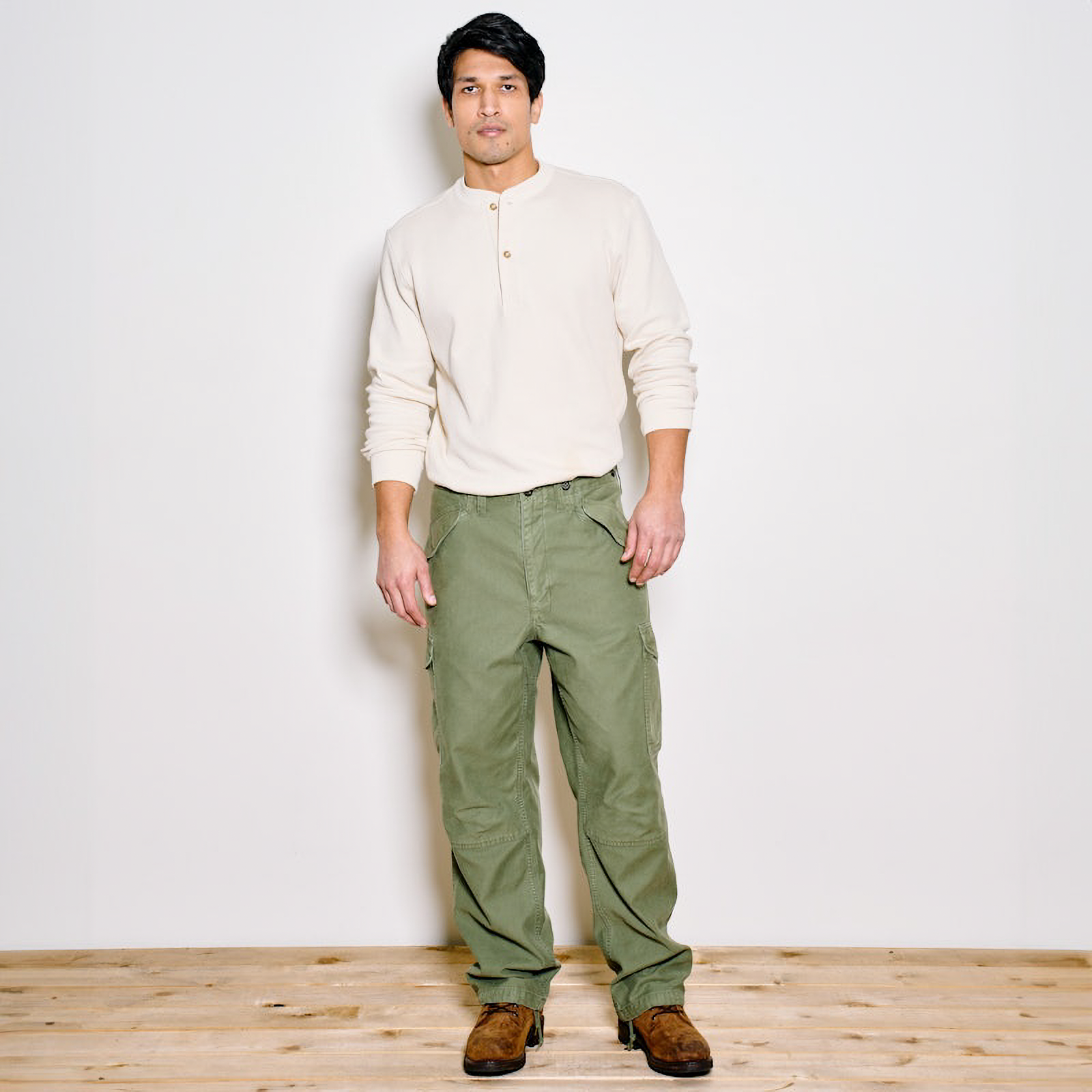 Filson’s Sturdy Field Cargo Pants combine the double-layer reinforcing of Filson’s legendary Double Tin Cloth Pants with the utilitarian fit and fabric of pants issued to WWII-era troops. We patterned these field pants directly after those issued by the U.S. Army in 1941, in a reverse sateen weave true to the original.