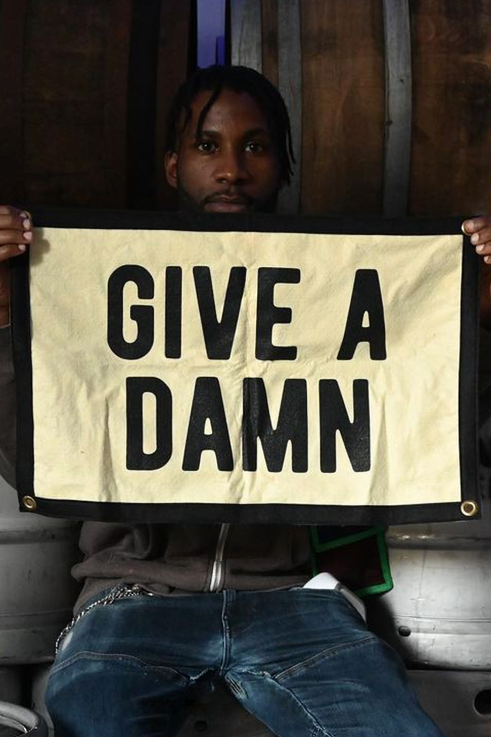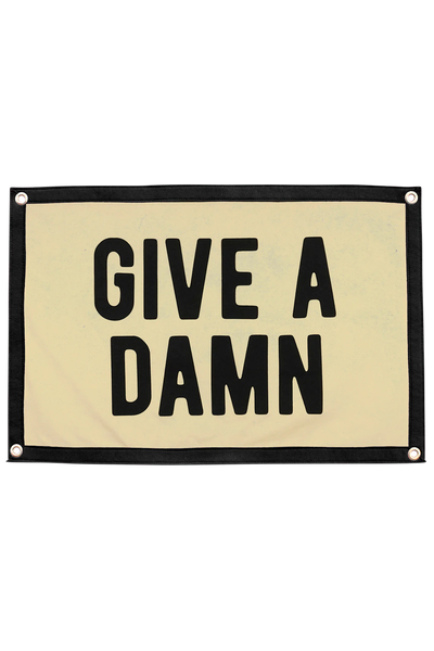 Don’t live life with an apathetic mindset. Find your passion, be kind to people, and care about the things going on in the world around you. Remind others to do the same with this cream and black camp flag.