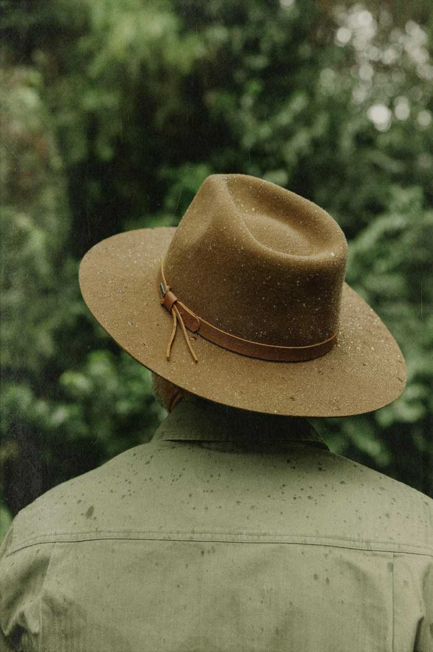 • 100% water-repellant Australian wool feltLeather bandAntimicrobial moisture-wicking sweatbandHard stiffnessTeardrop crownAdjustable velcro strap under sweatband for custom fitMetal headwear plaque