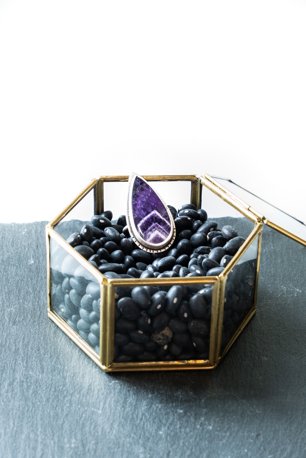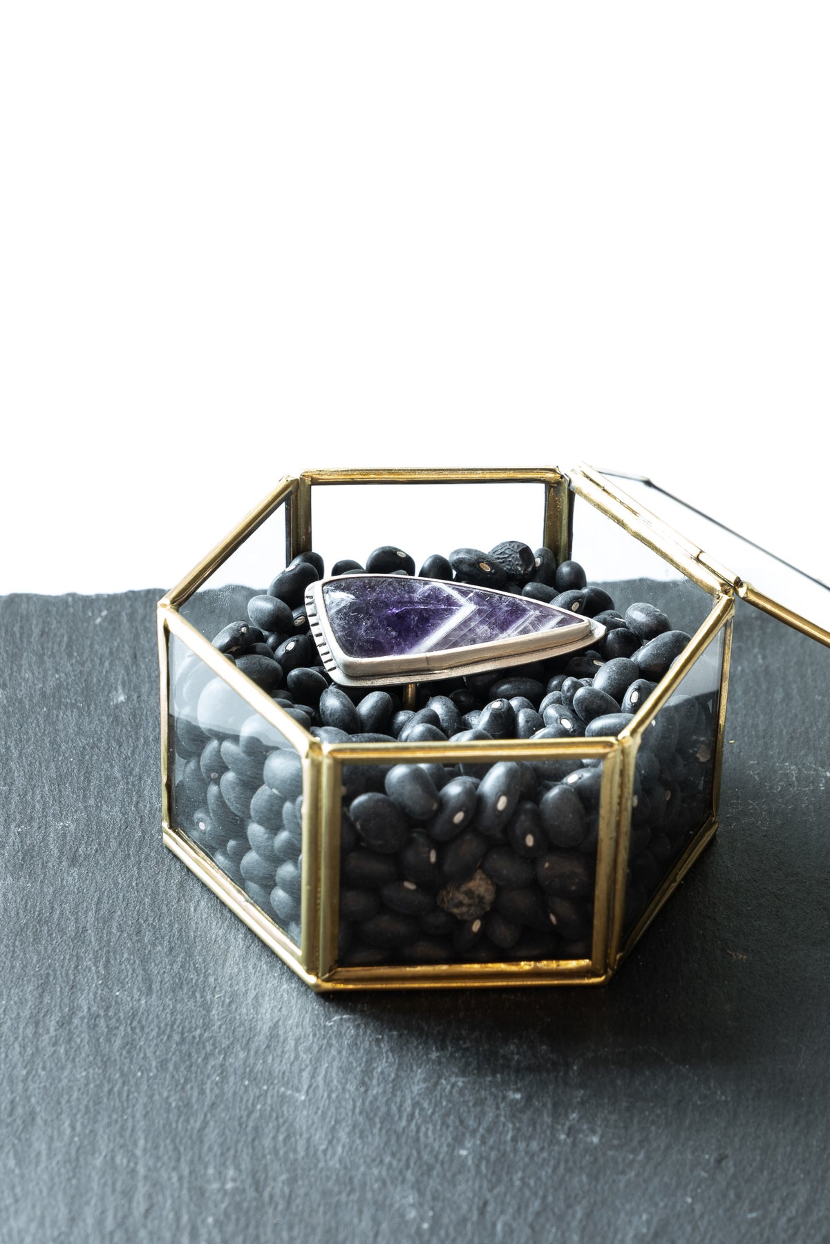 Transcending traditional valuation, amethyst used to be a stone for holy men and kings. Until everyone realized they look so much better on women. Since amethyst formations have been found in Brazil, amethyst has become a widespread companion stone. An electric feeling…