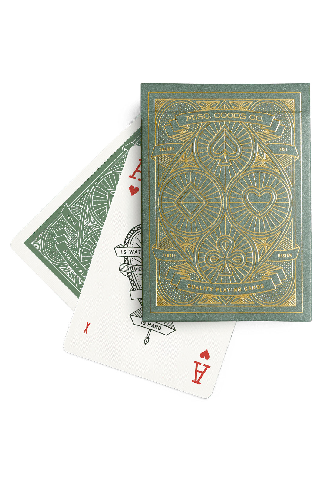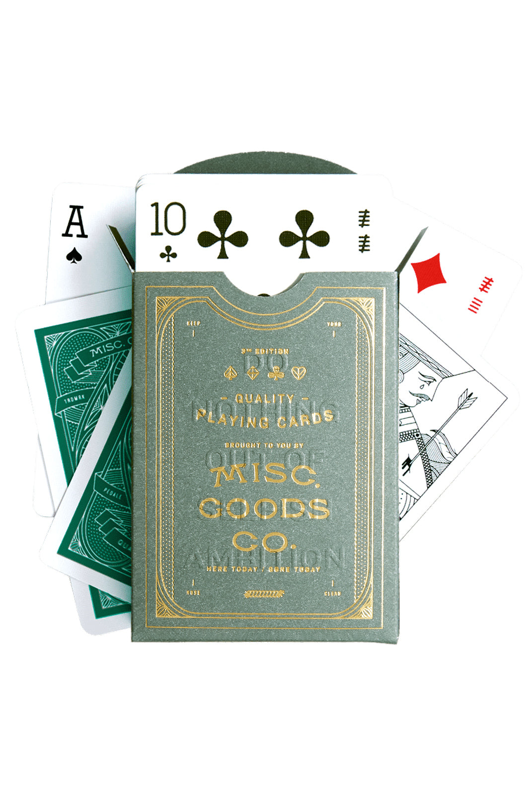 Misc. Goods Co. owner Tyler Deeb released his first deck of newly illustrated playing cards on Kickstarter in 2012 after three months of feverish design and attention. Each drawing on every playing card is re-imagined. The illustrations of the characters, symbols and each letter and number new.