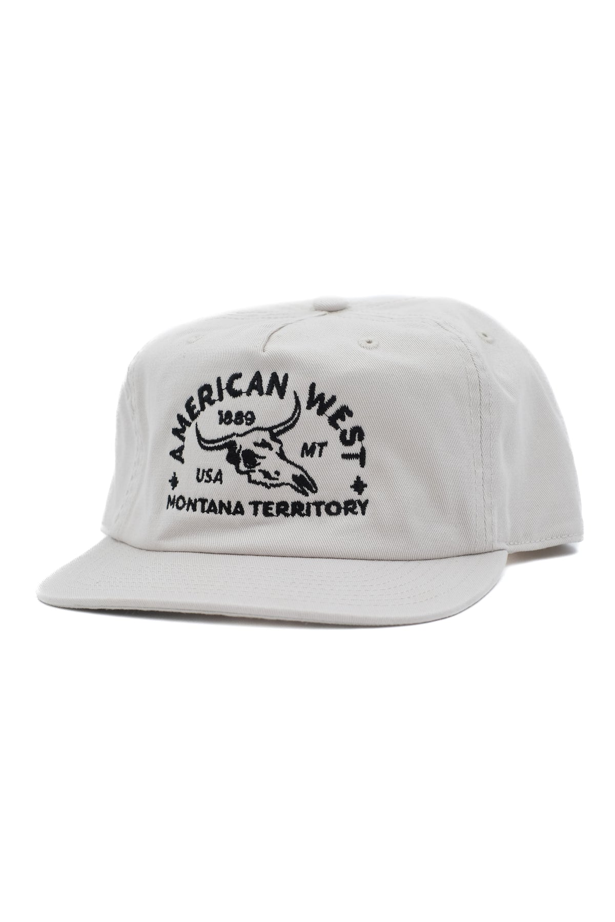 Our Montana Territory design stitched on an unstructured cotton cap.