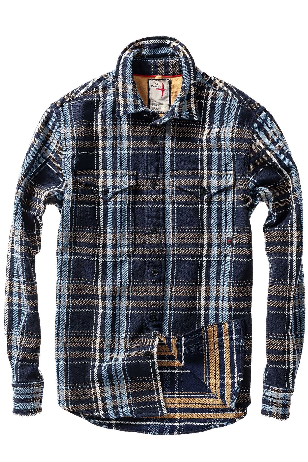 A classic-fitting workshirt, Relwen's 3x1 roped twill exhibits a rugged textured face with brushed backside. Perfect for those days that demand such a shirt be worn—or any day of the week for us. Fabrication and plaid patterns exclusively developed for Relwen.