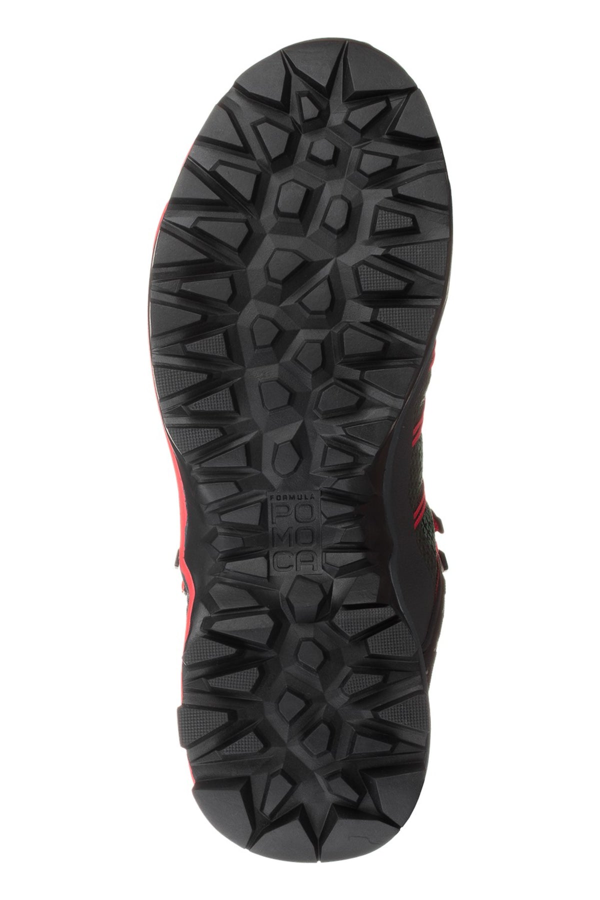 For additional stability and protection, there is a forgiving ankle cuff, a heel stabilizer and a rubber toe cap. Underfoot, the outsole guarantees reliable grip thanks to the Pomoca compound rubber and tread pattern with deep lugs and grooves and the versatility to cope with a wide range of terrain from mud and grass to rock, ice, and snow. The climbing lacing, which runs right down to the toe, allows easy customization for greater precision in technical terrain or more relaxed wear.