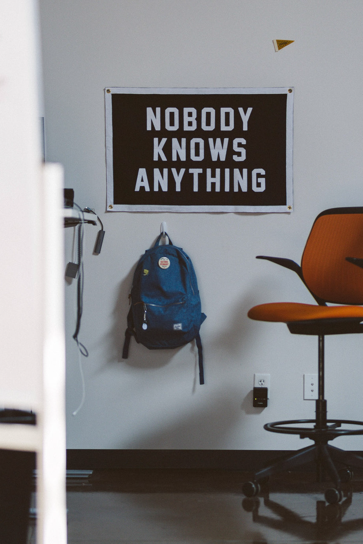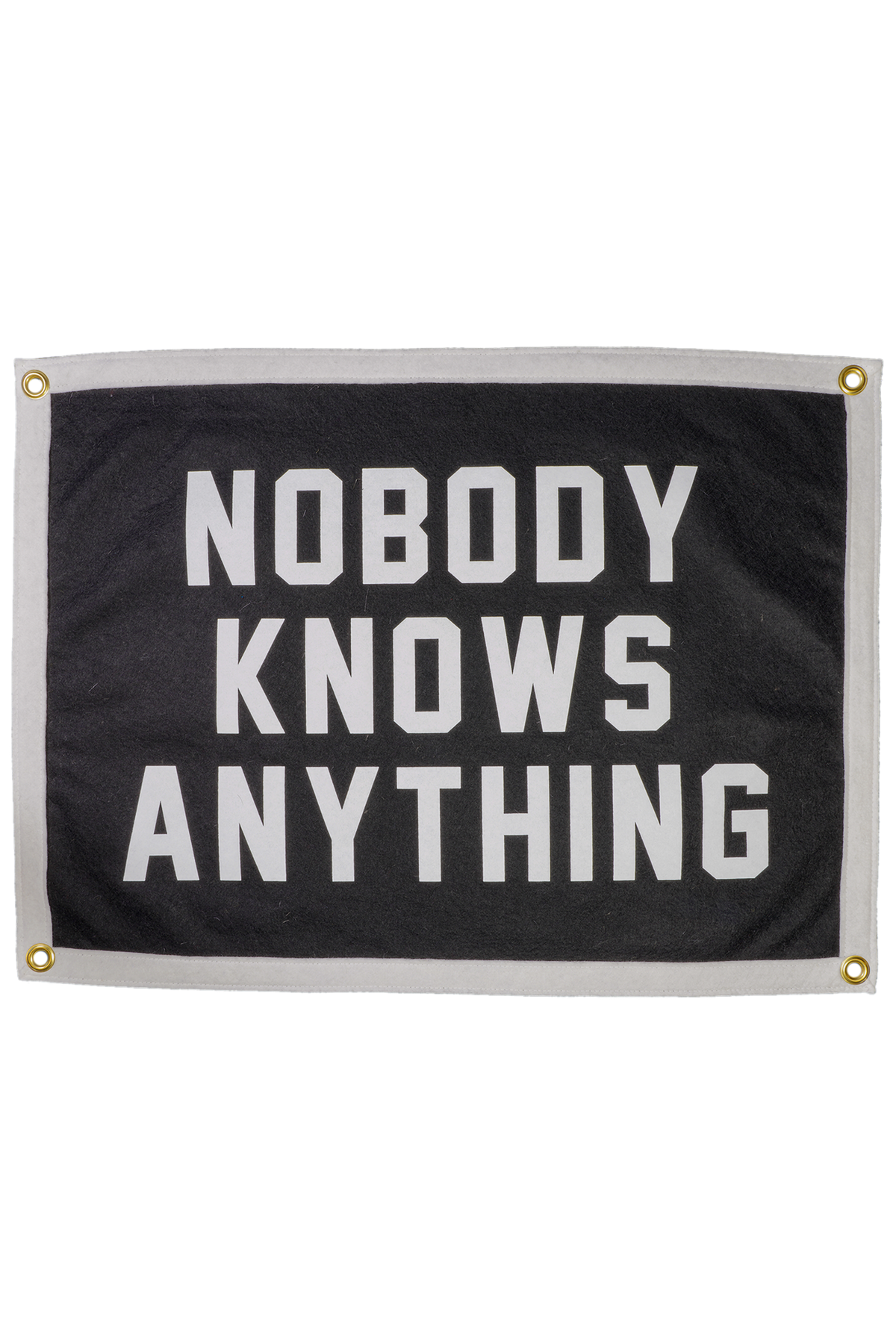 It’s the blind leading the blind. We’re all a little clueless and making things up as we go along—keep yourself and others humble with this black and white camp flag.