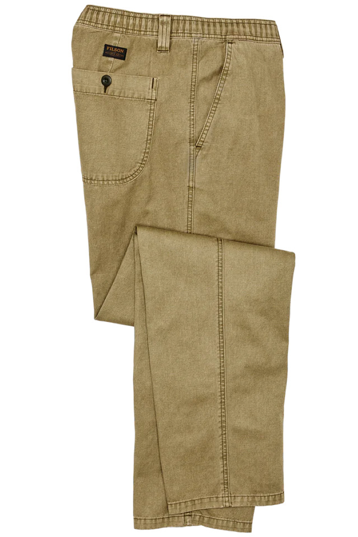 The tight weave of Filson’s Oakville canvas provides comfort in warmer conditions and the durability to withstand rugged use. Classic slash-front pockets are easy to access, and button closures keep valuables secure in the back. The waistband features beltloops plus hidden elastic and a drawstring for secure beltless wear. Garment-washed for shrinkage control and broken-in comfort from the first wear. Zippered fly and button-close waist.