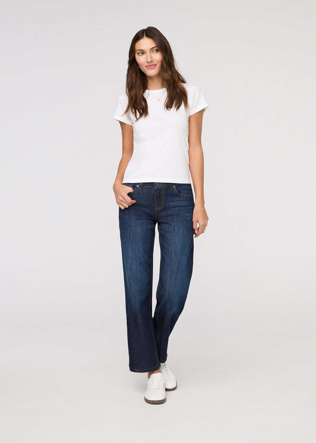 A modern straight-leg jean with a classic mid rise and relaxed ease through the hip and thigh. Made from our signature Performance Denim, this style blends the look and feel of premium denim with added stretch for all-day comfort and freedom to move. Designed for everyday wear with a laid-back, flattering fit.