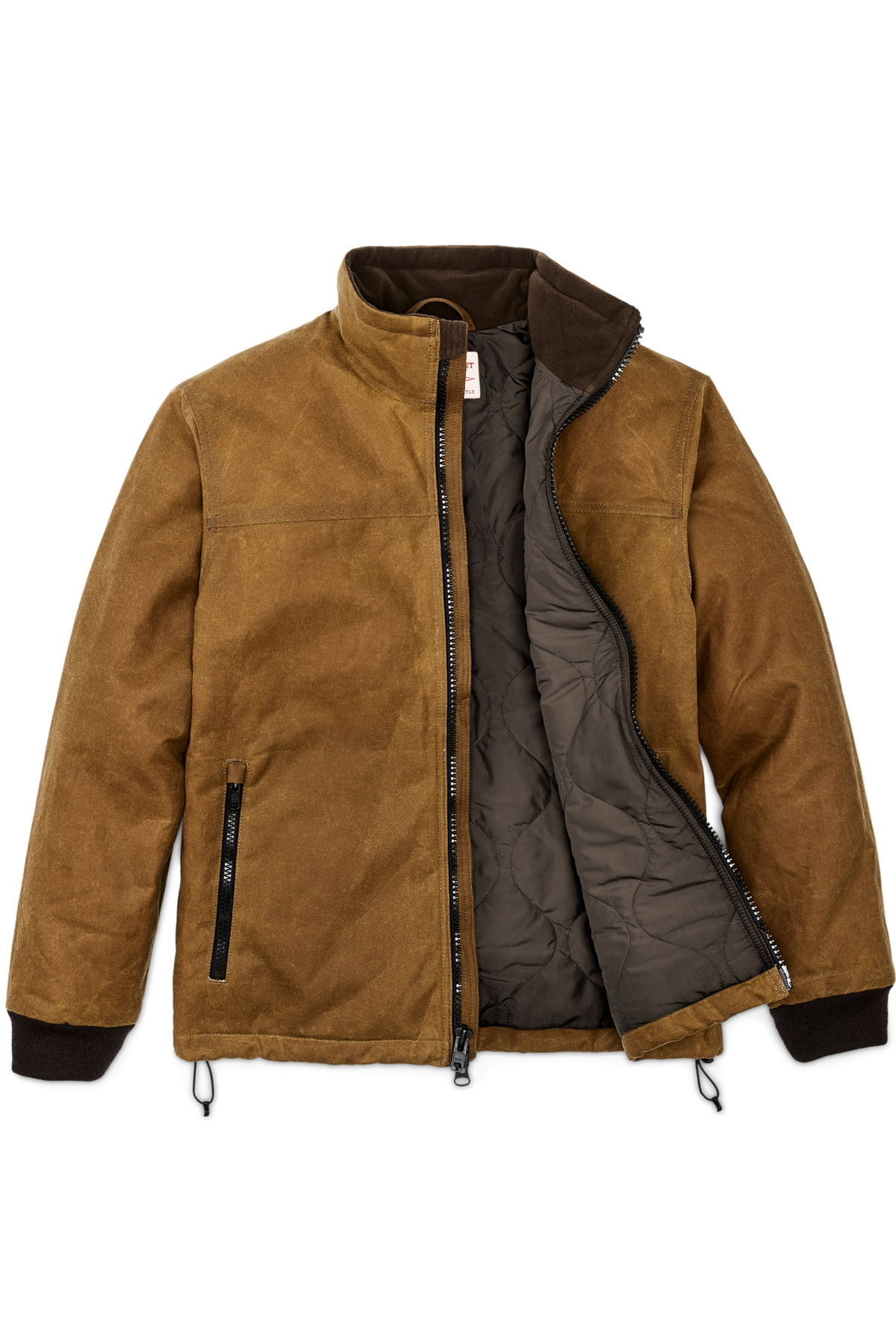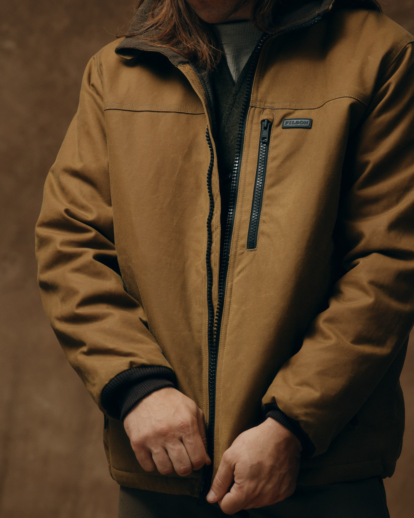 MATERIAL 14-oz. 100% cotton oil finish Tin Cloth + 76g polyester lining + polyester fleece + 100g Primaloft Gold insulation + rib-knit nylon