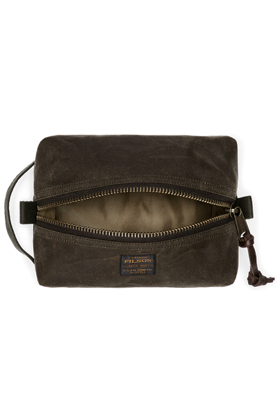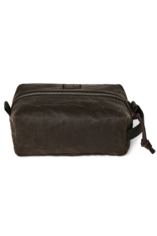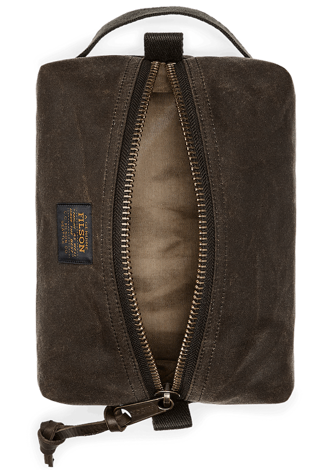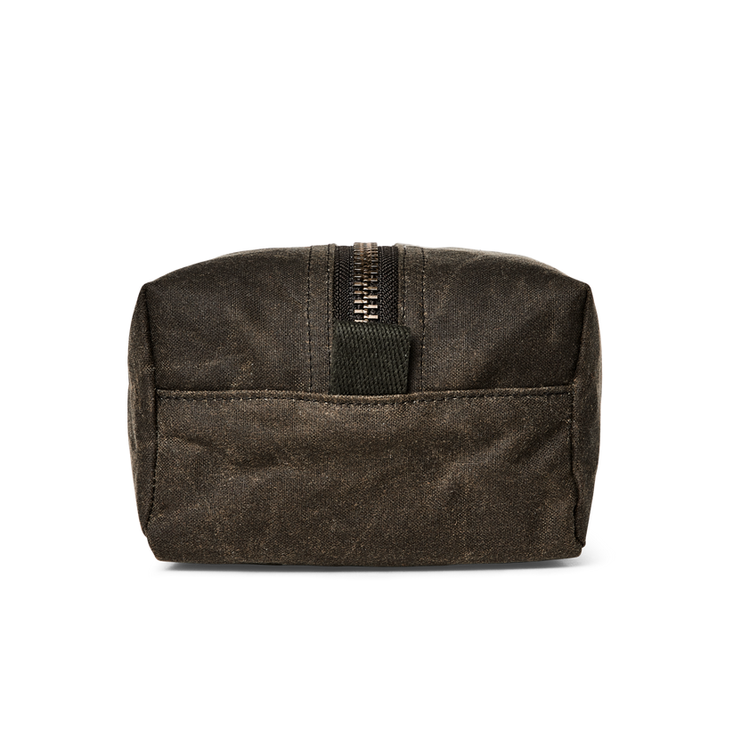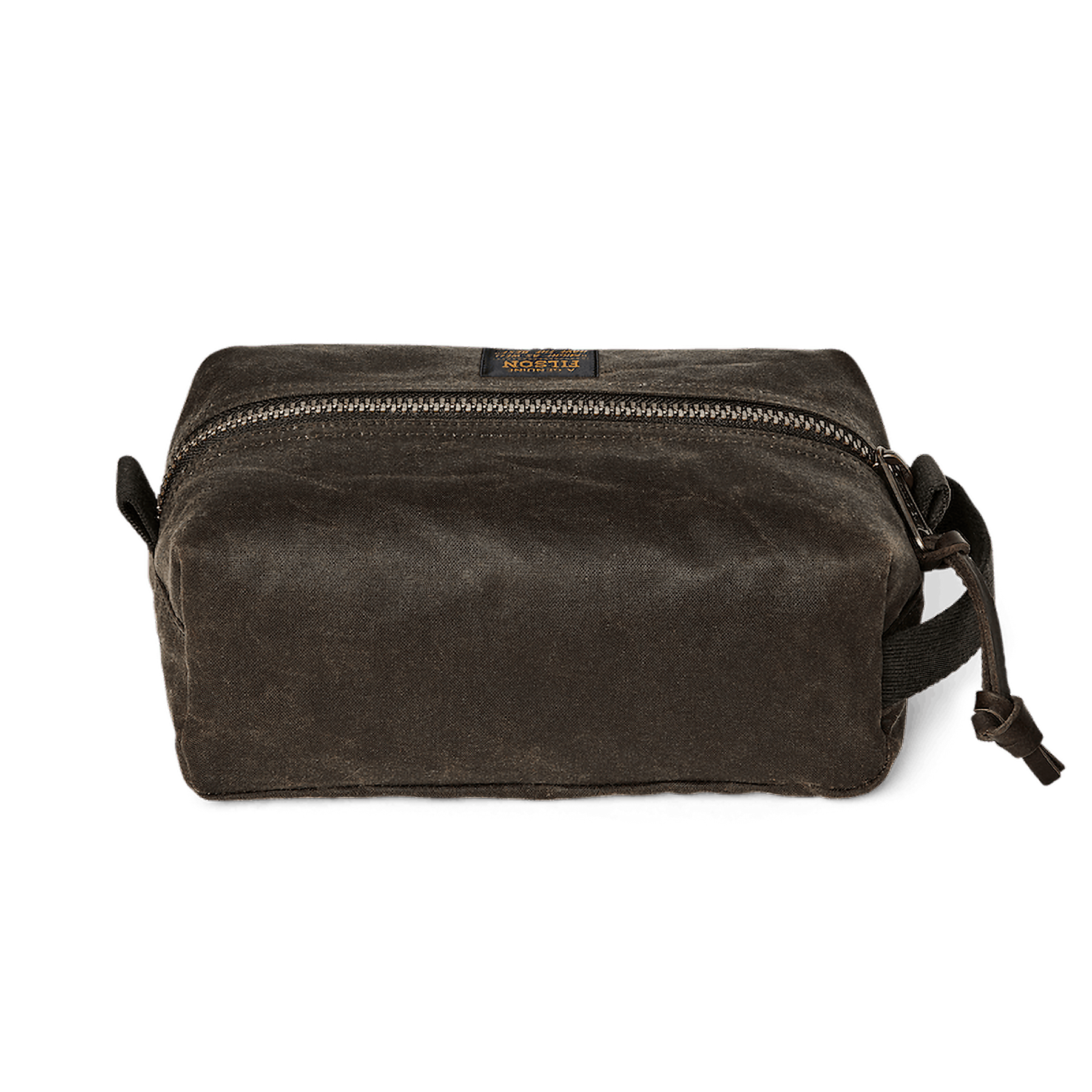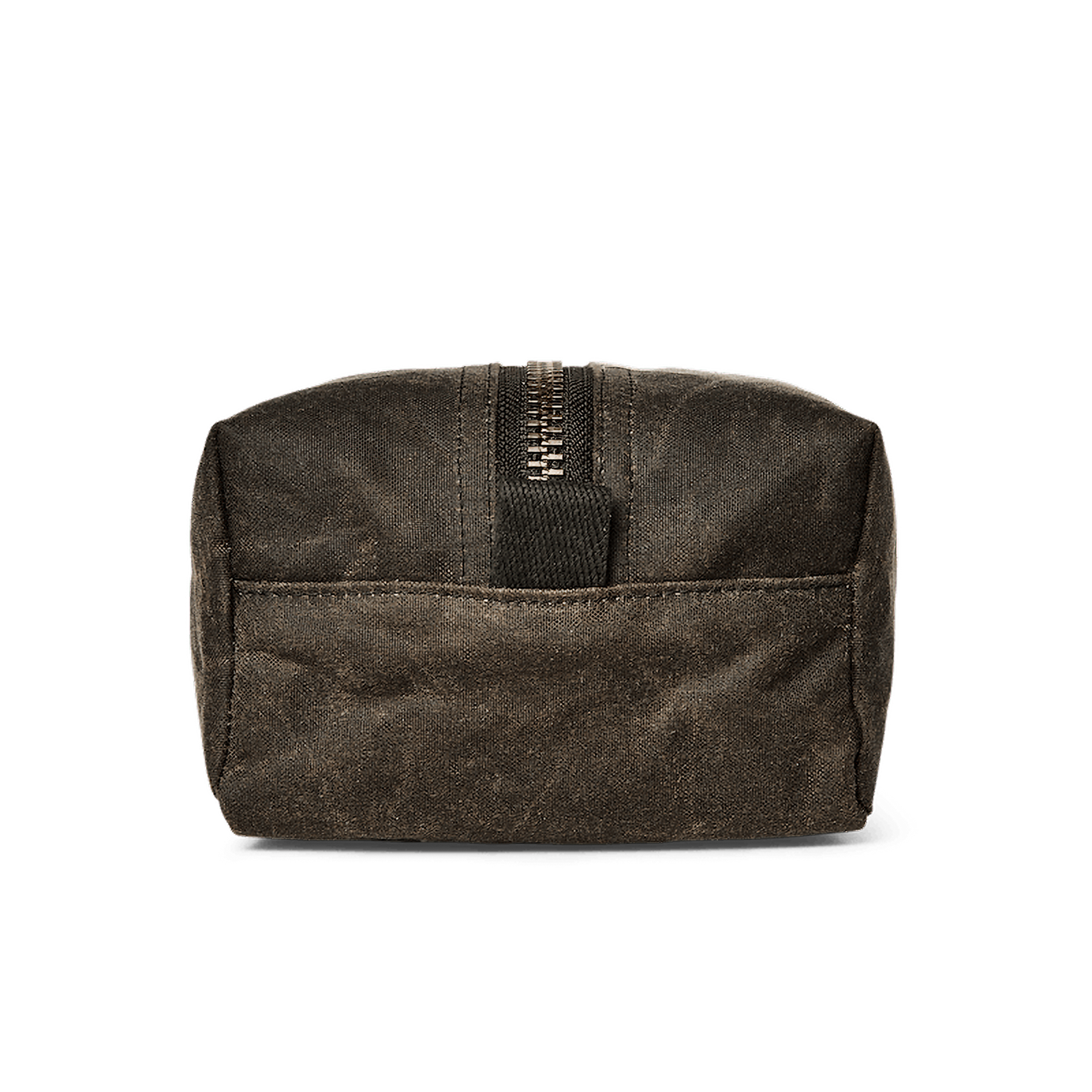 Tin Cloth Travel Kit is a lighter-weight dopp kit that carries travel essentials for a lifetime of journeys. It’s made with our iconic waxed canvas that’s protected foresters, sportsmen, and tradesmen from harsh weather, brush, and abrasion for more than a century. It’s fully lined with nylon to protect contents, and secures with a heavy-gauge metal YKK® zipper. The cotton-webbing grab handle doubles as a loop for hanging. Bridle Leather zipper pull.