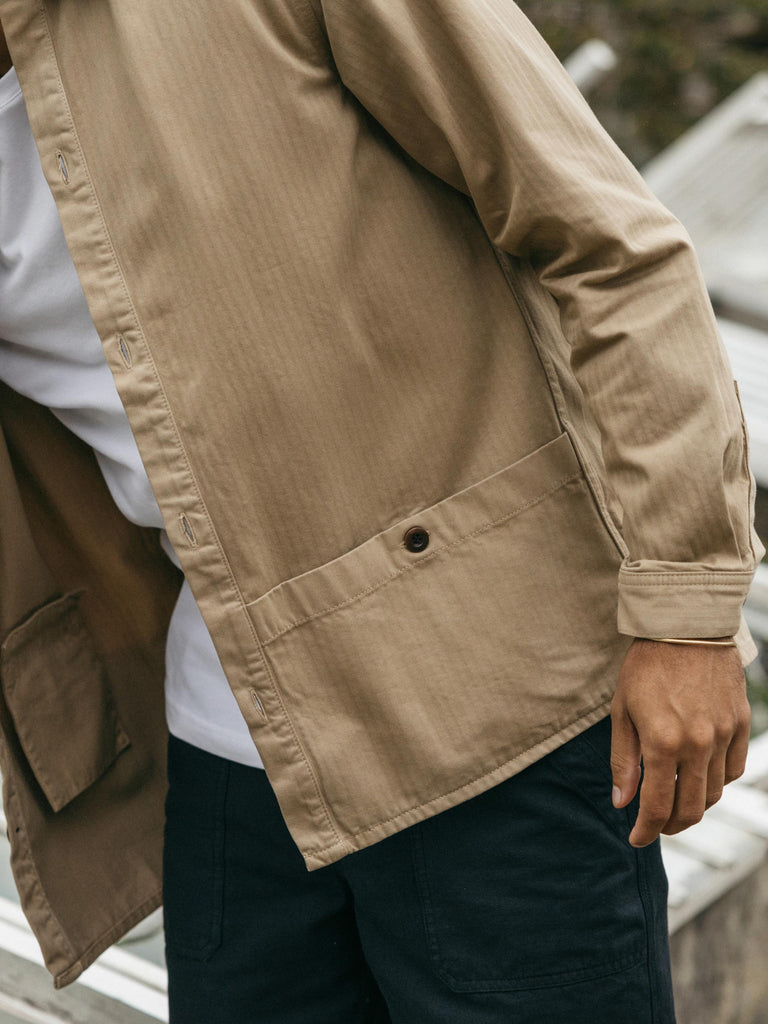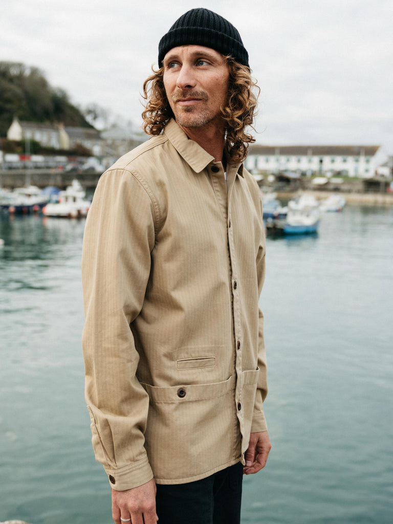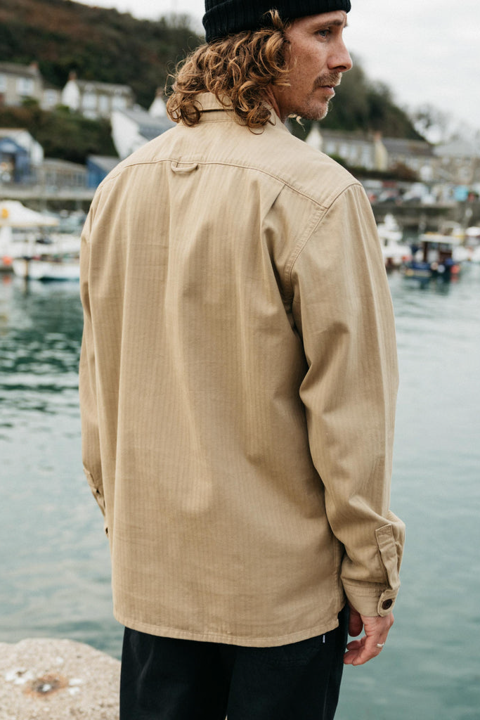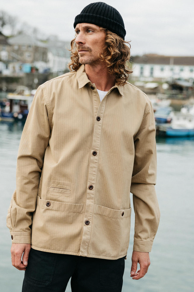 The Tonkin Work Shirt is the ideal casual overshirt for those cooler days as we move through spring. Made from mid-weight organic cotton herringbone twill, it layers comfortably over a tee or light jumper and features large utility-style lower patch pockets.