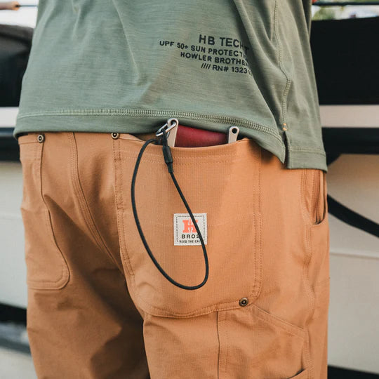 The Waterman’s Work Pants combine the sea-to-land versatility of our Shoalwater Tech Pants with the rugged endurance of your favorite pair of reinforced work pants. We forged the Workman’s out of 4-way stretch rip stop and added a rivet reinforced front panel and pliers pocket. This combo is quick drying, flexible and tough enough to keep you protected from every boulder in your path and chill enough for the next crawfish boil.