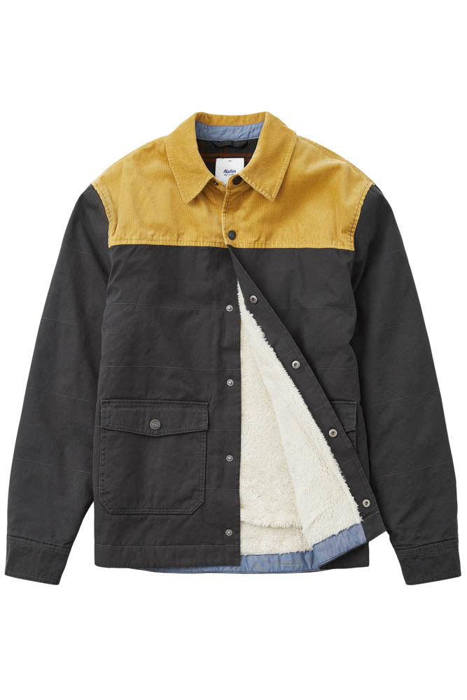 The Yukon Jacket is a 100% cotton button-down made from a cotton canvas shell that offers a custom sherpa body liner, poly sleeve liner, & gussets. Side welt pockets and patch  pockets.